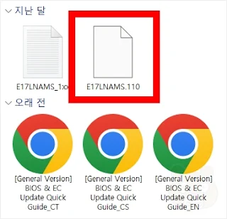 너무 당연한 이야기지만 반드시 제조사 공식 홈페이지에서 바이오스 파일을 다운로드 받아야 합니다. 출처가 불분명한 사이트에서는 절대로 받지 마세요! 랜섬웨어의 원흉입니다.